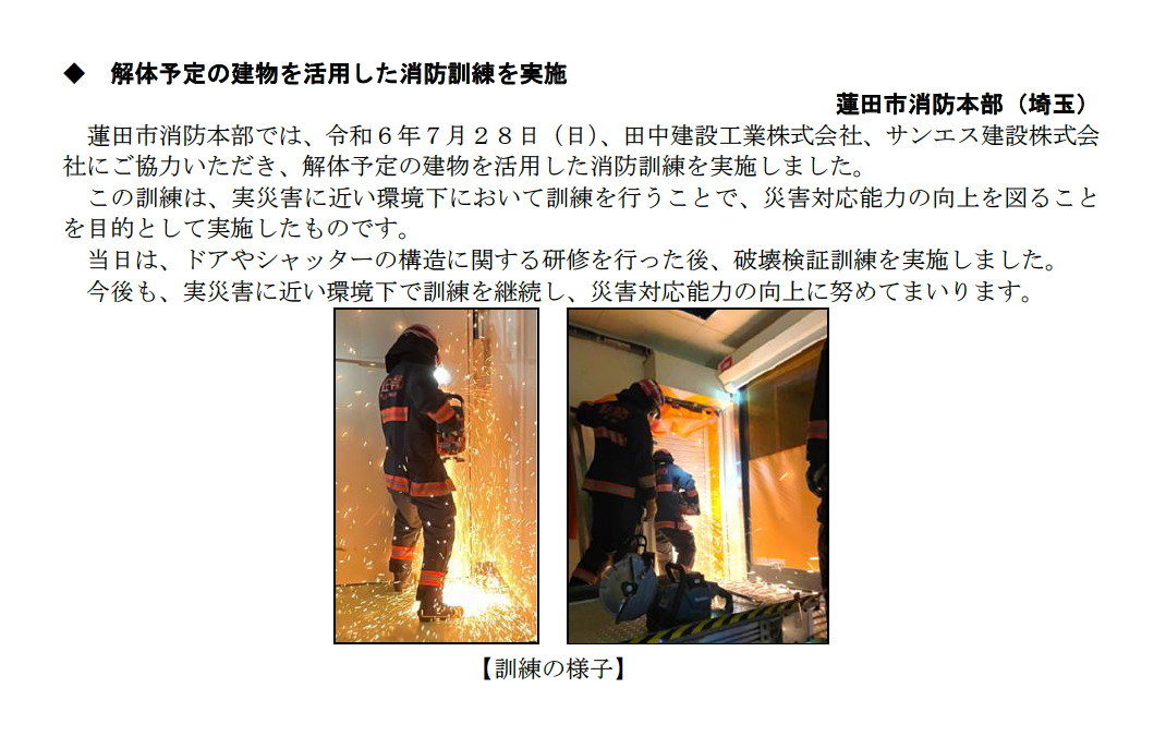 令和6年7月28日(日)に蓮田市消防本部の消防訓練にご協力させていただきました。
